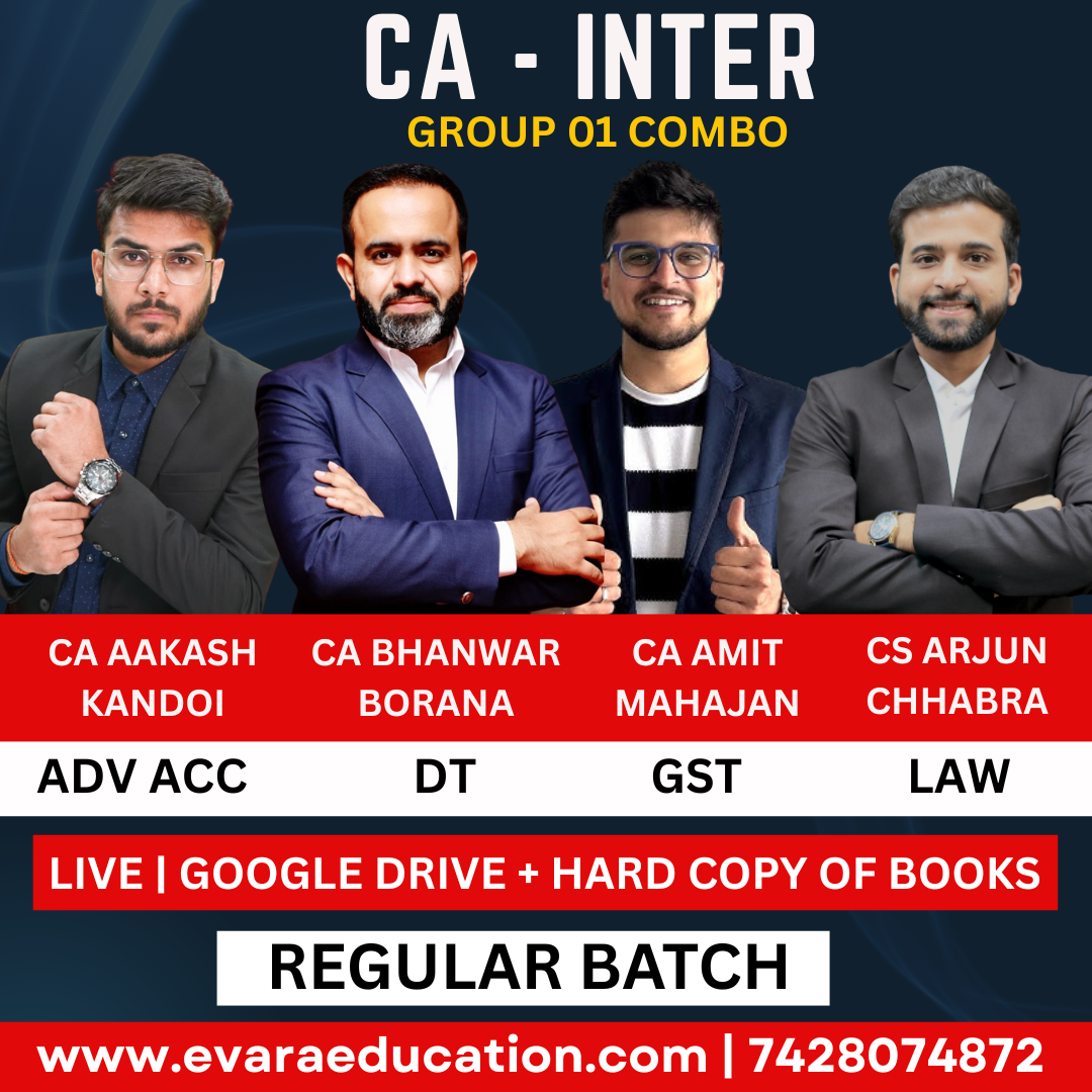 CA INTER – ADV.ACC + DT + IDT + LAW (Regular Batch) for May/Sep 2026 & Jan 2027 Exams by CA AAKASH KANDOI, CA BHANWAR BORANA, CA AMIT MAHAJAN & CS ARJUN CHHABRA