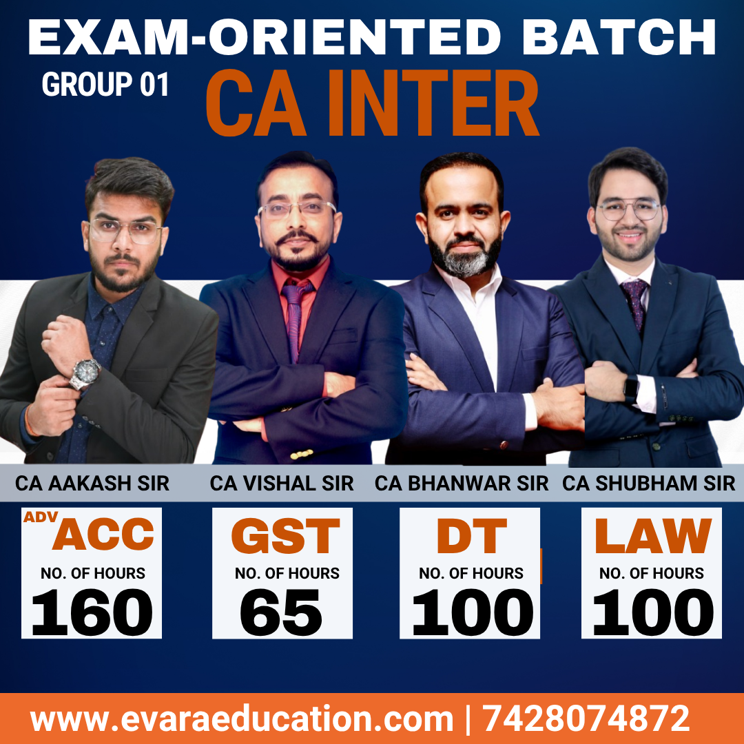 | Duration:- ADV.ACC- 160 hours | GST – 65 hours | DT – 100 hours | LAW- 100 hours | Language:- (Hindi- English Mix) |