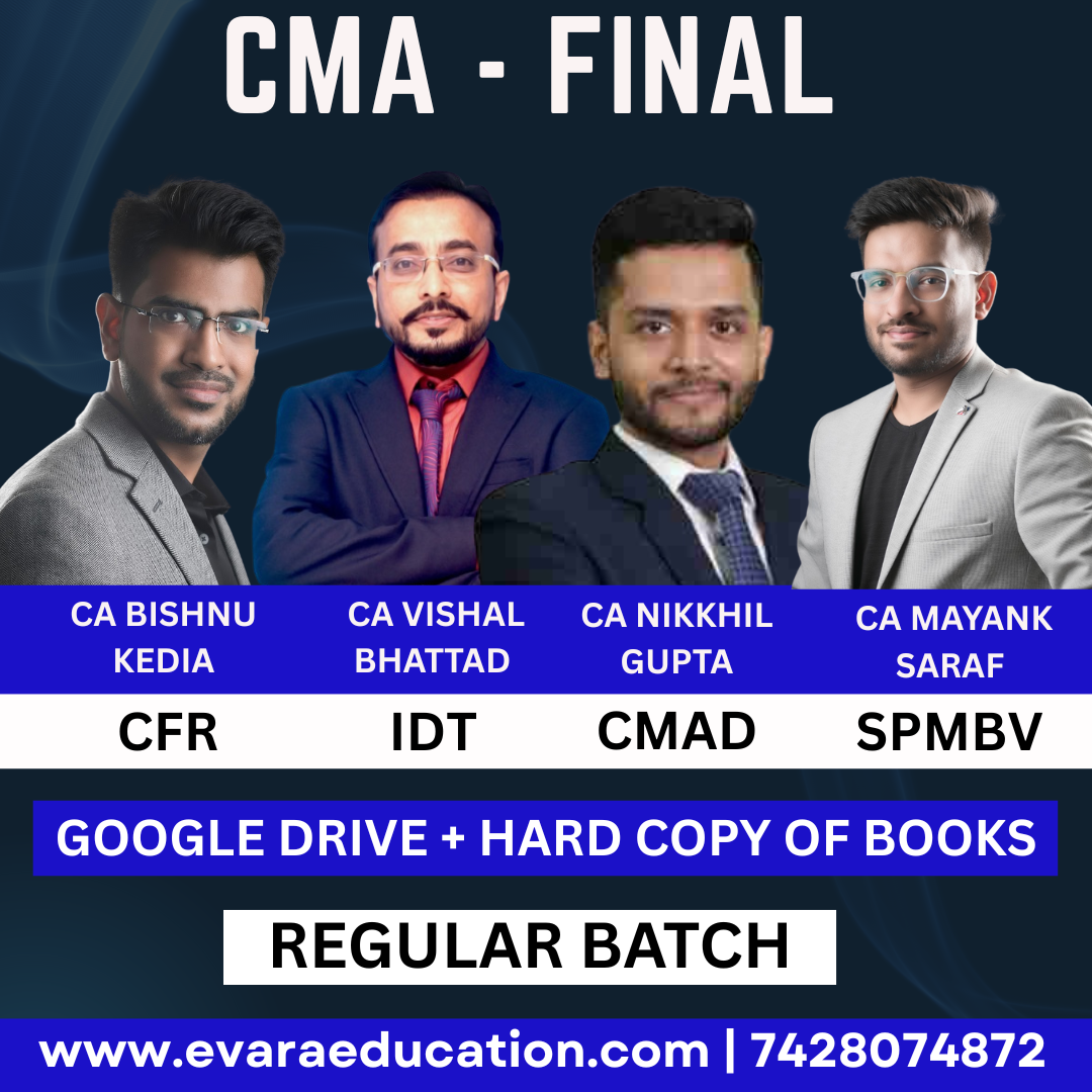 CMA FINAL – (COMBO GROUP 04) IDT + CFR + CMA + SPMBV (Regular Batch) for June/Dec 2026 by CA BISHNU KEDIA, CA VISHAL BHATTAD, CA NIKKHIL GUPTA & CA MAYANK SARAF