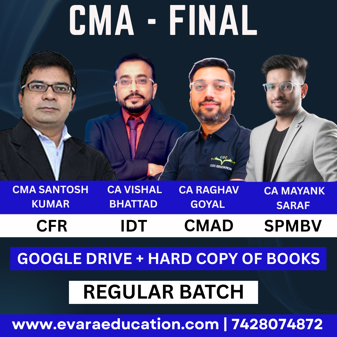 CMA FINAL – (COMBO GROUP 04) IDT + CFR + CMA + SPMBV (Regular Batch) for June/Dec 2026 by CA SANTOSH KUMAR, CA VISHAL BHATTAD, CA RAGHAV GOEL & CA MAYANK SARAF